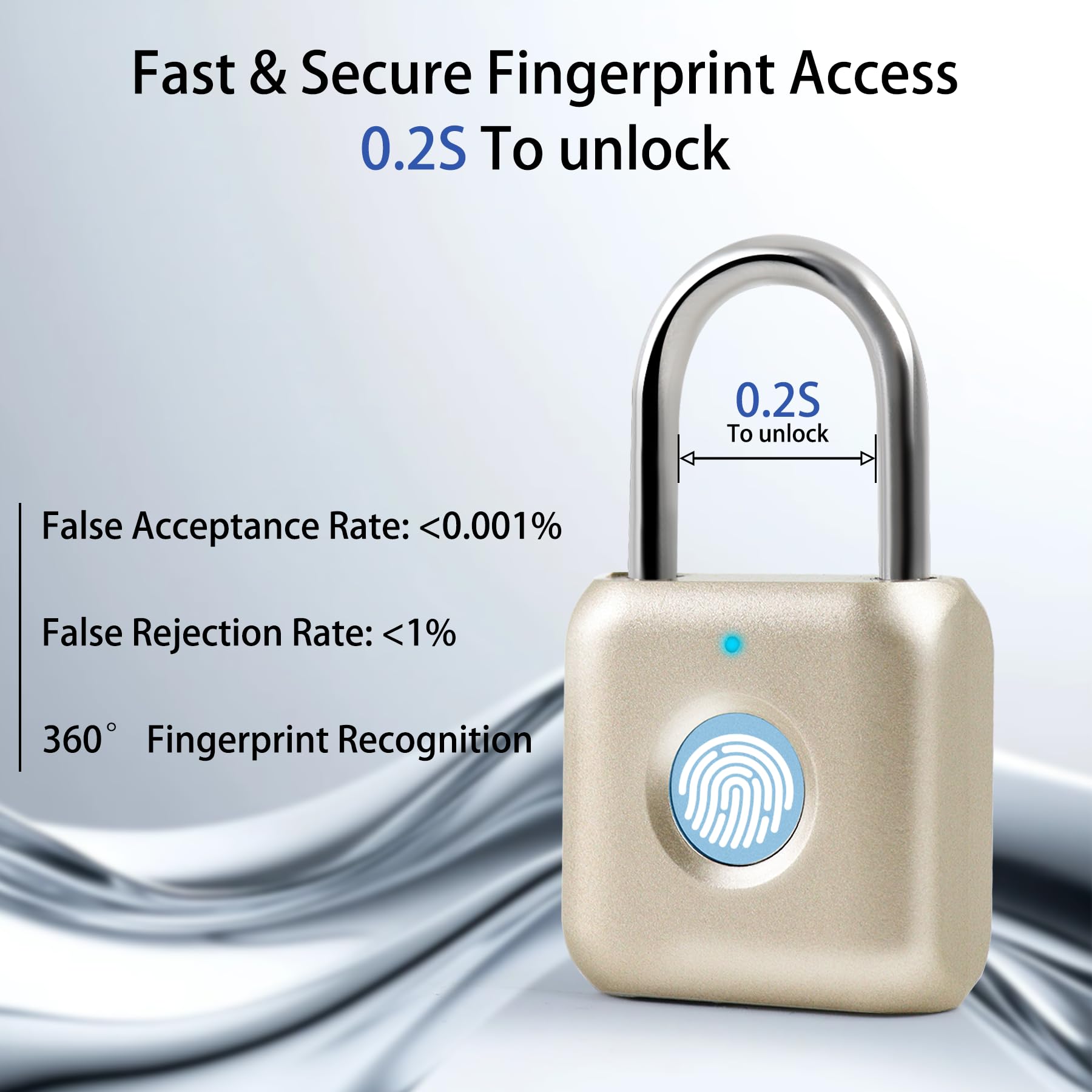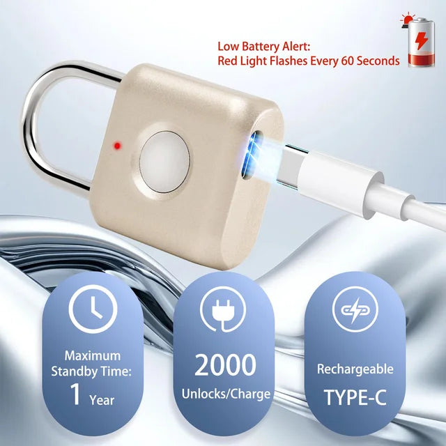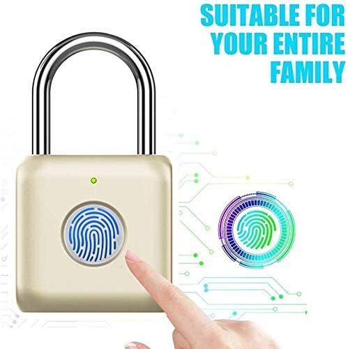 Candado inteligente con huellas dactilares, candado de combinación con USB recargable, impermeable, adecuado para cajas de herramientas, mochilas, maletas, equipaje, casilleros de escuelas, gimnasios, puertas, dorado